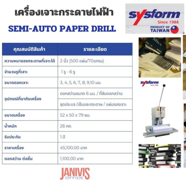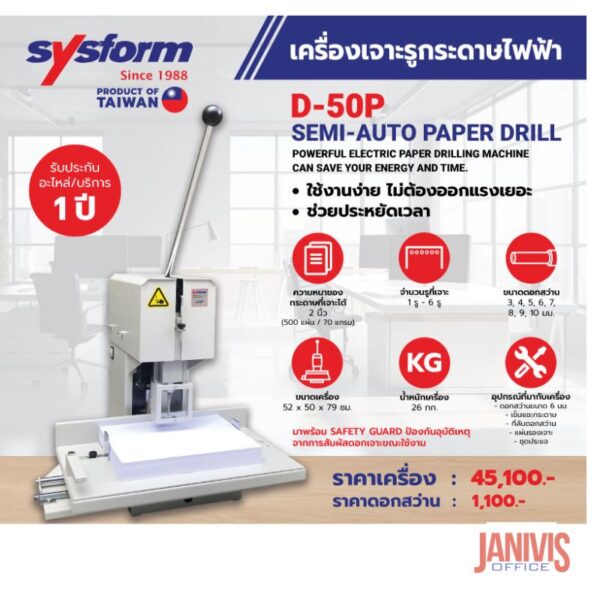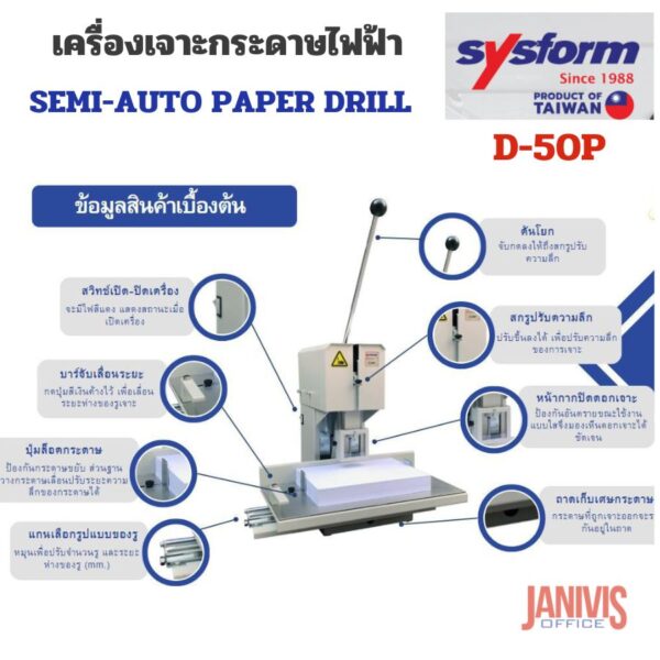 SYSFORM D-50P เครื่องเจาะรูกระดาษไฟฟ้า